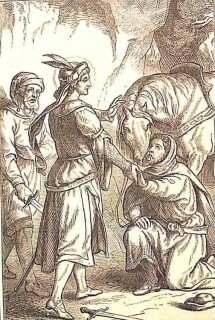 Es war gerade am heiligen Karfreitag, als der junge Edelmann Gualbert dem lang aufgesuchten Mörder seines lieben Bruders Hugo, dem er nach Sitte der damaligen Zeit Blutrache geschworen, in einem Hohlwege bei Florenz begegnete. Zornentbrannt zückte er das Schwert gegen den Wehrlosen. Dieser, nicht im Stande zu fliehen, kniete nieder, kreuzte die Arme über der Brust und flehte: „Um Jesu willen, der heute am Kreuz seinen Mördern verziehen, erbarme dich meiner; wenn ich ein Mörder bin, wolle du es nicht auch werden; wenn ich im Sturme der Leidenschaft unschuldiges Blut vergossen, so schone du in ruhiger Besonnenheit des Schuldigen und vergib dem Reumütigen.“ Gualbert fühlte sich wie gelähmt, so sehr hatte diese Bitte sein Herz erschüttert, und nachdem er eine Weile mit sich selbst gekämpft, warf er das Schwert fort, reichte dem Knienden die rechte Hand mit dem Ausruf: „Um was du am Karfreitag im Namen Jesu bittest, kann ich dir nicht abschlagen: möge Gott auch mit meine Sünden verzeihen!“, er umarmte und küßte ihn und eilte von dannen. Wunderbar im Gemüt aufgeregt kam er zur Klosterkirche St. Minias, schickte seinen Begleiter mit den Pferden heim, trat in die Kirche und kniete vor dem Bild des Gekreuzigten nieder zum Gebet. Als er sein tränenfeuchtes Auge zum heiligen Bild empor richtete, schien der gekreuzigte Jesus voll Huld und Gnade das Haupt zu neigen und freundlich zu sagen: „Weil du verziehen hast, will auch Ich dir verzeihen.“